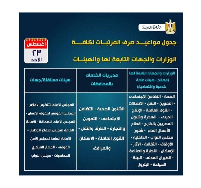 جداول دفع مرتبات العاملين بالحكومة لشهر أغسطس اعرف يوم الصرف حسب مكان عملك Opera News