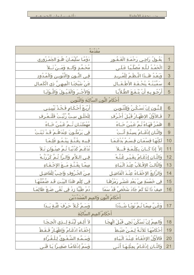 متن تحفة الاطفال مكتوبة كاملة مع الشرح سليمان الجمزوري