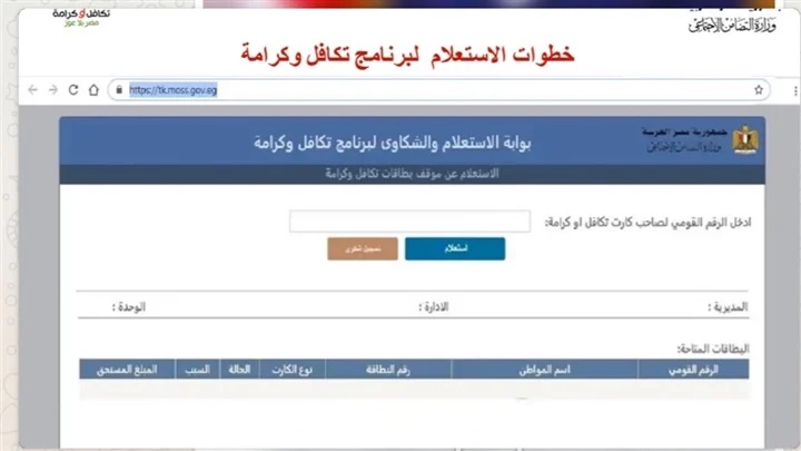 الاستعلام عن تكافل وكرامة بالرقم القومي Https Tk Moss Gov Eg الريادة نيوز