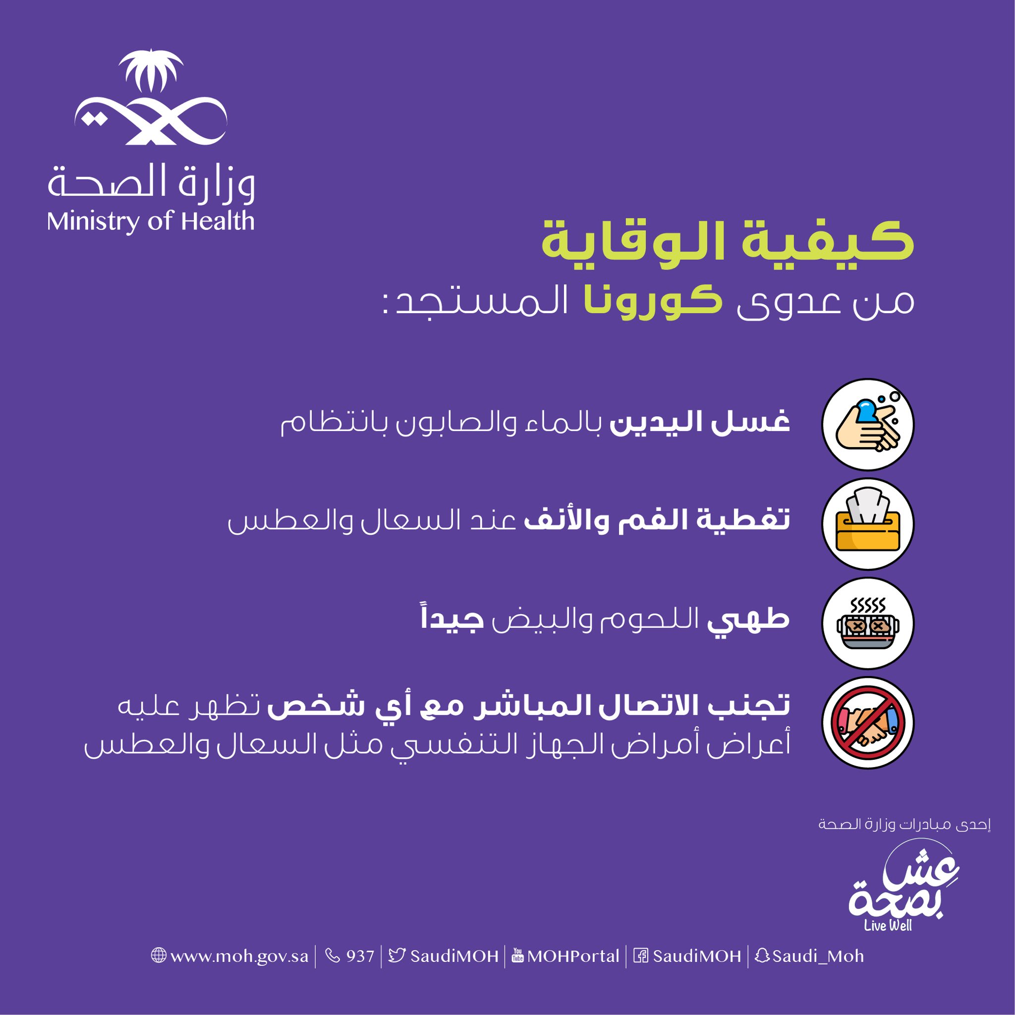 و ز ا ر ة ا لـ صـ حـ ة السعودية On Twitter تعرف على طرق الوقاية من فيروس كورونا الجديد