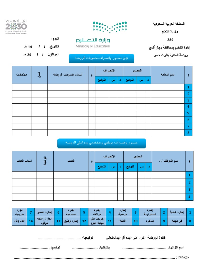 دفتر الحضور والانصراف بالمدرسة سجل المعلمين Doc
